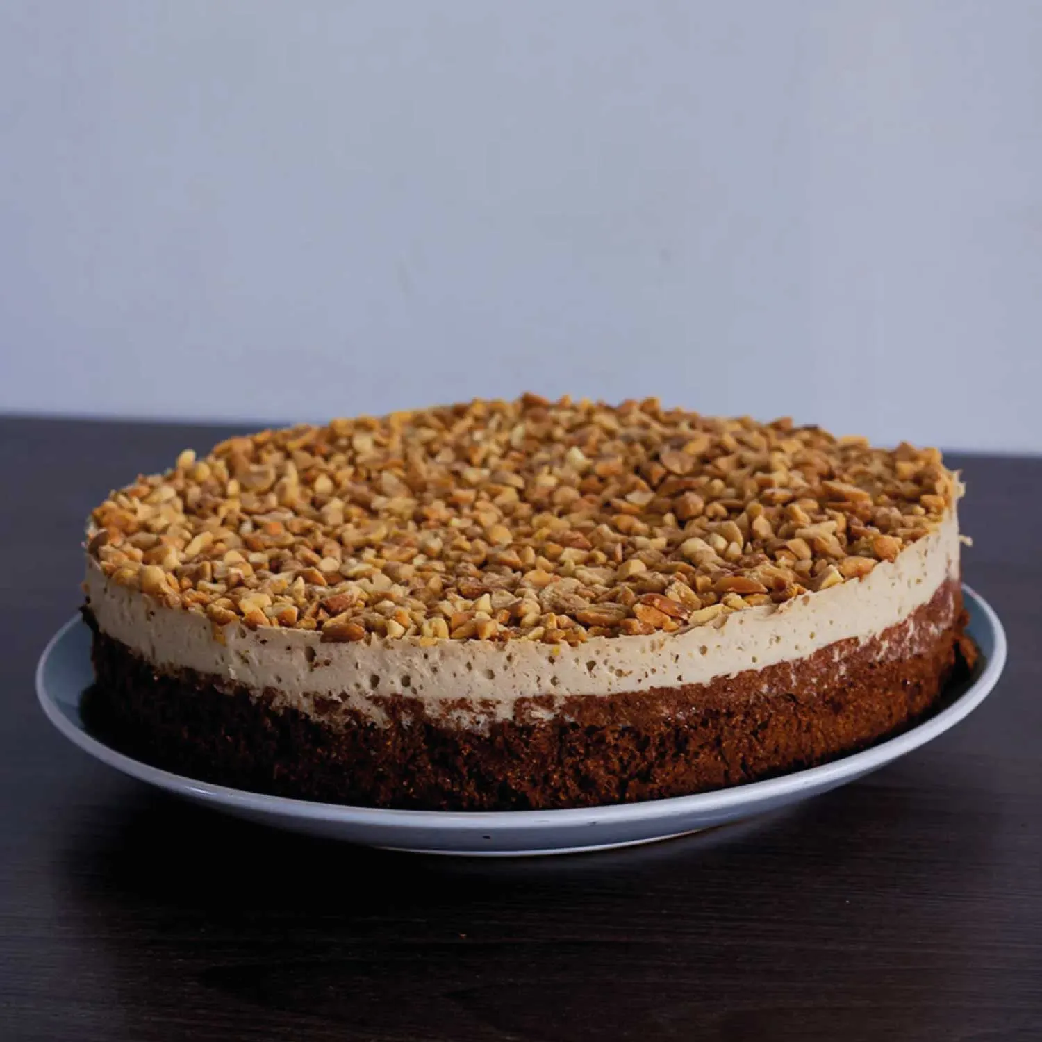 Delicioso pastel libre de gluten, endulzado con stevia, hecha a base de proteína y crema de maní, sabor dulce de leche.
